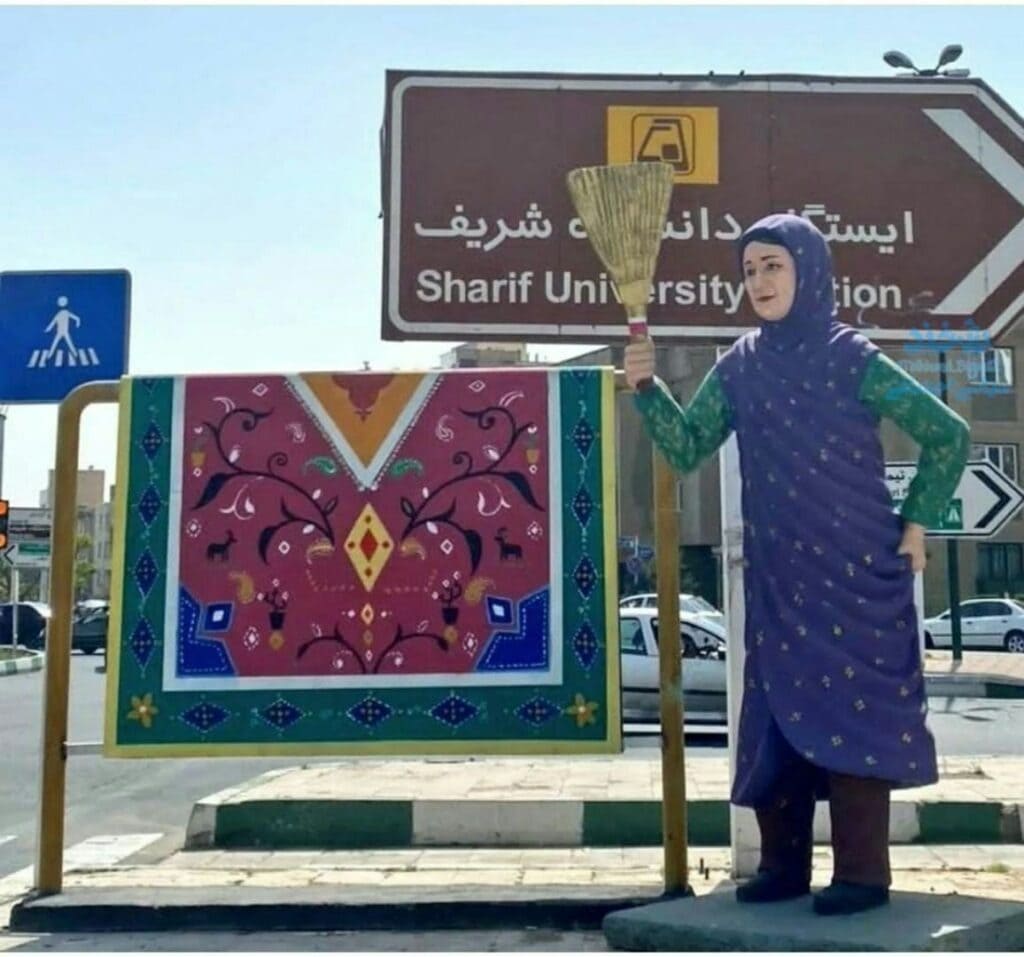 درحالیکه زنان ایرانی علی‌رغم همه محدودیت‌هایی که نظام ولايت مطلقه فقيه اعمال می‌کند ، در عرصه‌های مختلف می‌درخشند ، شهرداری تهران نمادی از یک زن را درحالیکه چادر به کمر بسته و جارو در دست دارد ، در شهر نصب کرده است !