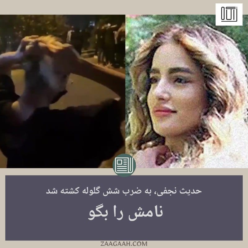 ظهر روز ۳۰ شهوریورماه، او فراخوان اعتراضی علیه قتل «ژینا امینی» را در صفحه اینستاگرام خود منتشر کرد. افسون نجفی، خواهر حدیث نجفی پیشتر در گفتگو با رادیو فردا گفته بود: «حدیث ساعت ۷ شب از سرکار به خونه اومد، یه کوله برداشت، لباسْ عوض کرد و رفت. در طول مسیر برای دوستانش ویدئو ارسال کرده و به اونها اطلاع داده بود که به تظاهرات میره. ساعت ۸ و نیم شب با ما تماس گرفتن که حدیث تیر خورده و بیمارستان قائم بستری شده. ماموران بهدروغ به ما گفتن که حدیث اینجا نیست و توسط مردم، فراری داده شده، اما حدیث، همون شب کشته شده بود و در بیمارستان بود.»