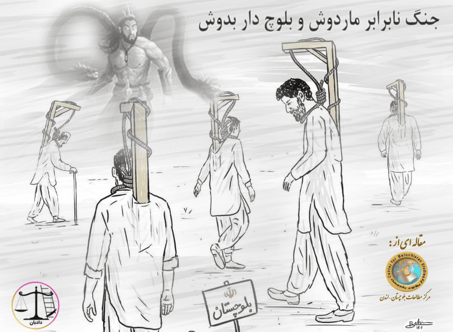 بیاد کتاب ضحاک مار دوش اثر علی اکبر سعیدی سیرجانی افتادم که نوشت و هزینه سنگین و دهشتناک را با جان شیرین خود پرداخت. بیاد اشعار احمد شاملو افتادم که در مورد قربانیانی که صلیب خود را تا مسلخگاه بی عدالتی بر دوش می کشند, افتادم. شاید بلوچها از همان بدو تولد با چوبه دار بر دوش بدنیا می آیند تا در نوبت آنها به کار آید. و ما نیز که در بیرون از “زمان” ایستاده ایم نظاره گرانه انتظار می کشیم. و باز هم بقول شاملو “در مردگانِ خویش نظر میبندیم با طرحِ خنده یی، و نوبتِ خود را انتظار میکشیم بی هیچ خندهیی”.