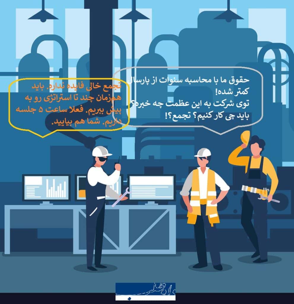 و این نکتهای است که کارفرمای بزرگ میترسد کارگران آن را درک کنند. سرکوبگران دارای قدرت رسمی، از راههای گوناگون تلاش میکنند که به مردم بباورانند که متشکل شدن پر از هزینه و بیفایده است؛ در حالی که خودشان برای تشکل هزینه میسازند.