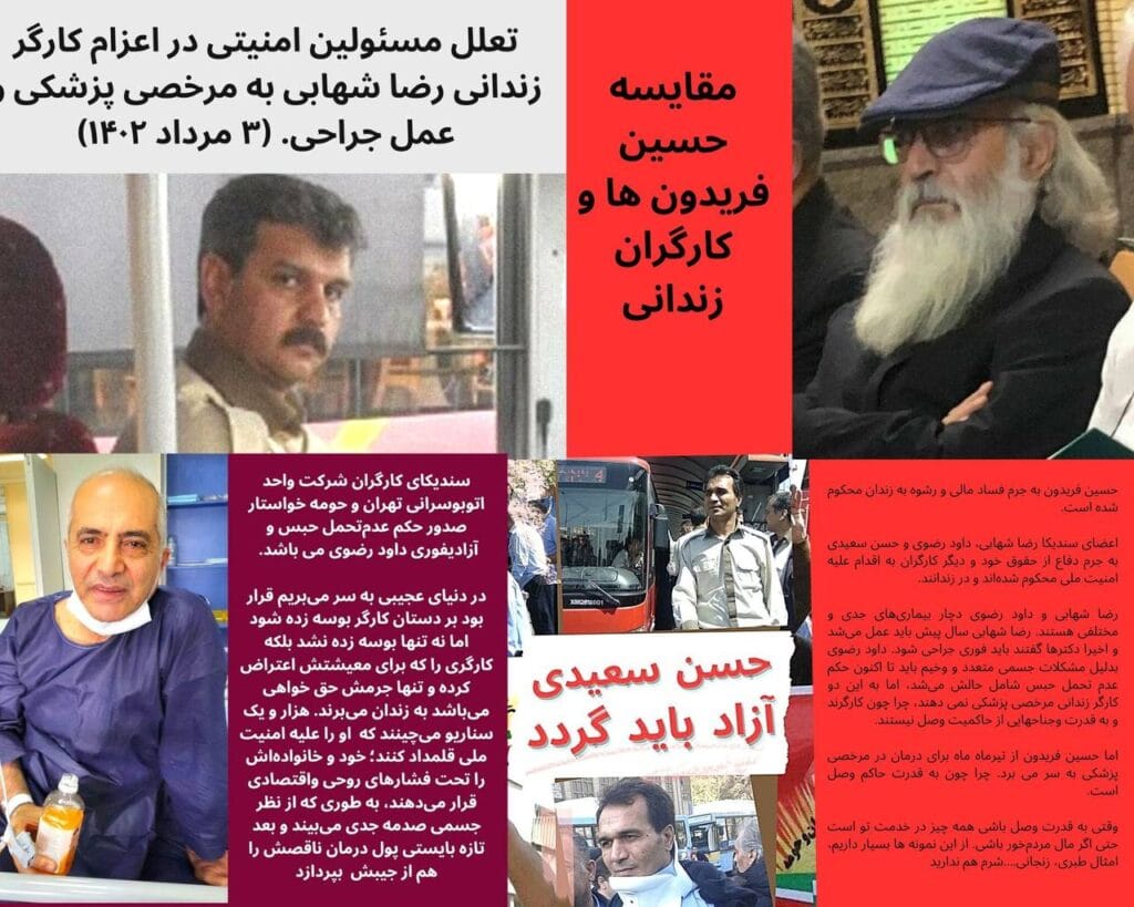 رضا شهابی و داود رضوی دچار بیماریهای جدی و مختلفی هستند. رضا شهابی سال پیش باید عمل میشد و اخیرا دکترها گفتند باید فوری جراحی شود. داود رضوی بدلیل مشکلات جسمی متعدد و وخیم باید تا اکنون حکم عدم تحمل حبس شامل حالش میشد، اما به این دو کارگر زندانی مرخصی پزشکی نمی دهند، چرا چون کارگرند و به قدرت وجناحهایی از حاکمیت وصل نیستند.