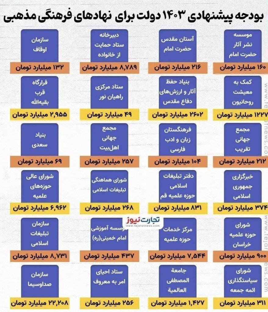 تصویر، بودجه نهادهای فرهنگی و مذهبی سال پیش روست. به تجربه چهار دهه هزینه و فعالیت و عدم خروجی مناسب، بی شک کم هزینه ترین گزینه، کاهش و حذف بودجه این نهادهاست.